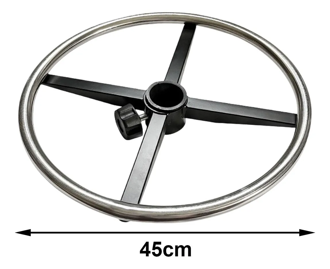 Conta com sistema de fixação central ajustável, permitindo regulagem de altura conforme a necessidade do usuário. O formato em anel (45 cm de diâmetro) facilita o apoio dos pés em diferentes posições, ajudando a melhorar a postura e reduzir o cansaço nas pernas.